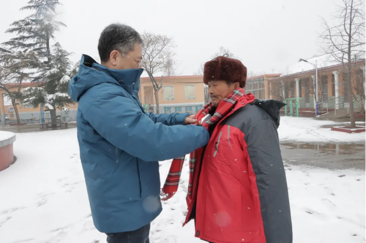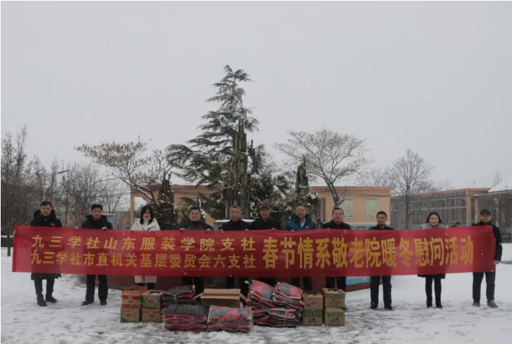 暖暖关爱心,浓浓敬老情。纵然天空飘着雪花,也抵挡不住为老人们尽一份心力的热情。2022年1月22日,春节来临之际,九三学社山东服装学院支社携手山东健源生物等爱心人士,走进楼德敬老院开展“春节情系敬老院暖冬慰问”活动,精心为老人们准备了棉衣、围巾、新鲜水果等慰问品,希望用我们行动让老人们感受到爱与温暖。