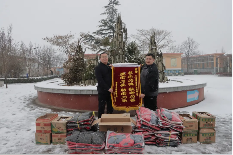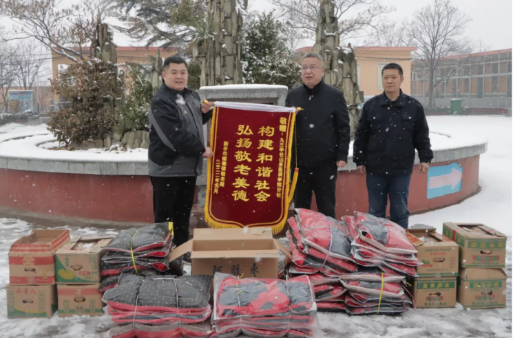 敬老院向九三学社山东服装学院支社和山东健源生物科技有限公司赠送了锦旗。并表达了深深谢意。敬老院负责人表示,感谢大家对敬老院的持续关注,对老人们的深切关怀,你们的爱心让老人们感受到冬日温暖。