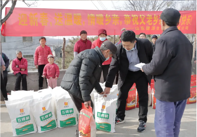 岁寒情暖,2022年1月27日山东健源生物科技有限公司走进徂徕镇开展“迎新春、送温暖、情暖乡亲”慰问活动。新年即将来临,山东健源生物精心为父老乡亲们准备了慰问品,并向他们带去新年的祝福。慰问现场暖意洋洋,一句句暖心的话语,一句句贴心的问候,令人动容,每个人脸上都洋溢着幸福的笑容。