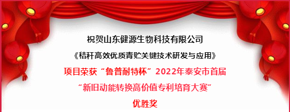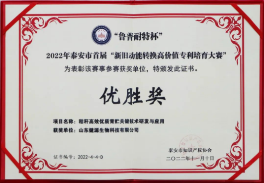 祝贺山东健源生物荣获2022年泰安市首届“新旧动能转换高价值专利培育大赛”优胜奖
