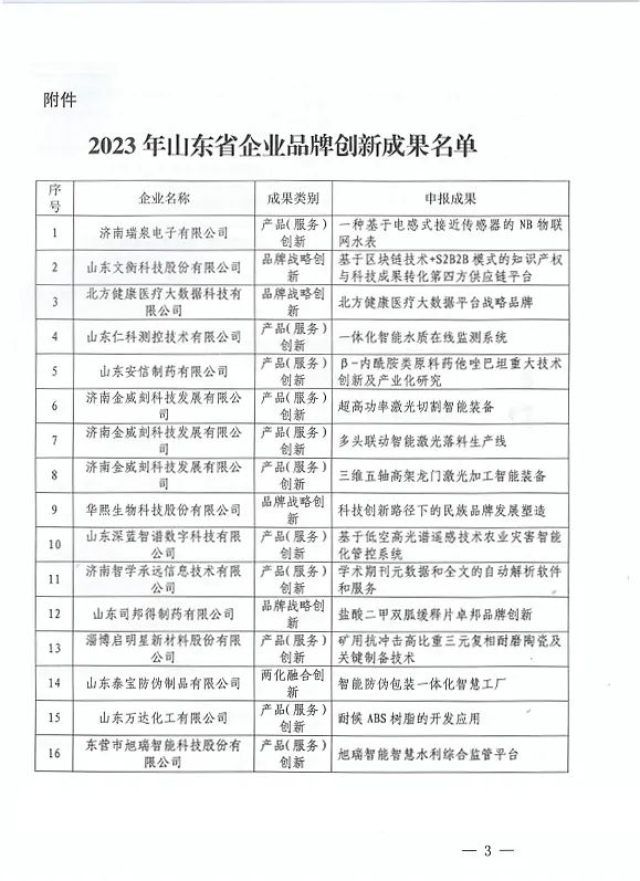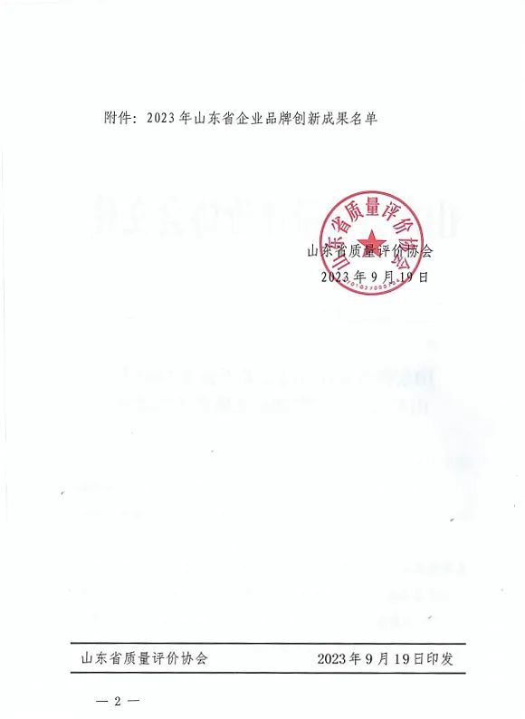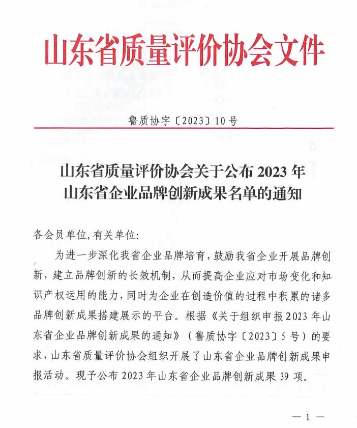 附:《山东省质量评价协会关于公布2023年山东省企业品牌创新成果名单的通知》