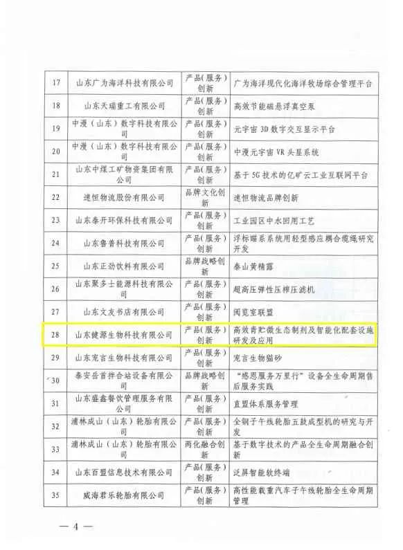 健源生物科研成果被评为2023年山东省企业品牌创新优秀成果