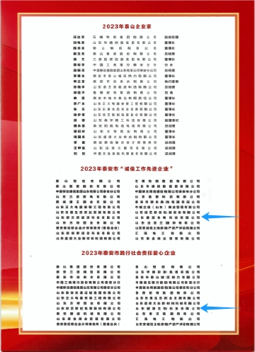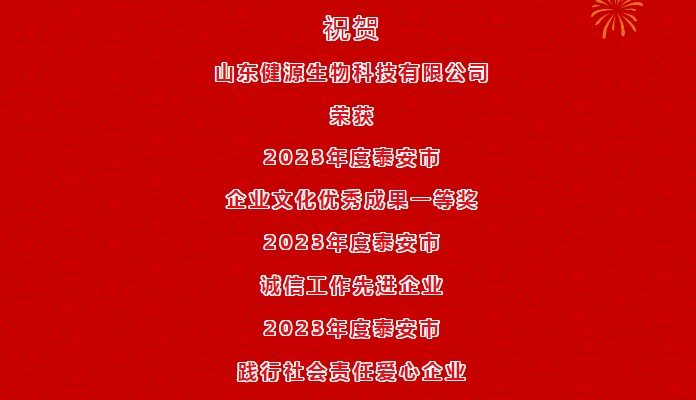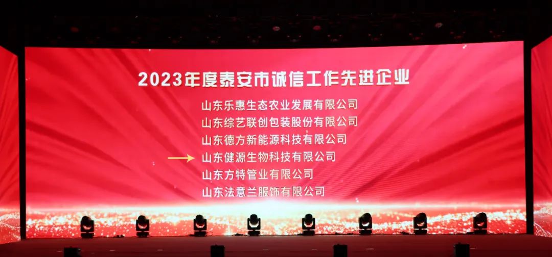 市泰山企业家审委会经申报并认真评选,决定授予山东健源生物科技有限公司等24家企业(单位)为“泰安市诚信工作先进企业”称号。
