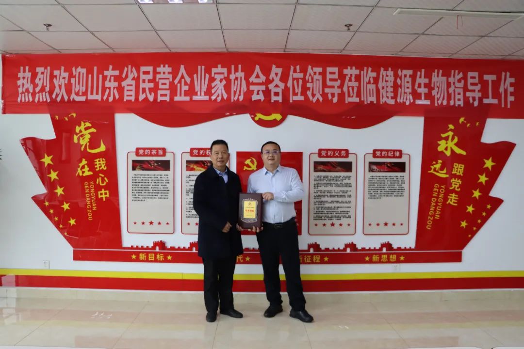 2024年1月17日,山东省民营企业家协会秘书长李吉祥,协会党支部书记、副秘书长孙力,协会秘书处主任彭亚玲,协会秘书处副主任柳川莅临公司调研工作,并为健源生物颁发奖牌和证书。