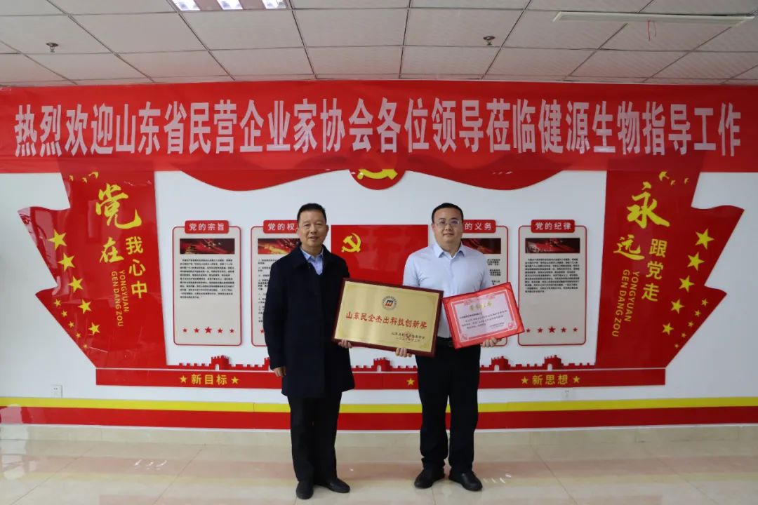 在科技创新的征途上,健源生物再创佳绩,荣获山东省民营企业家协会“山东民企杰出科技创新奖”。