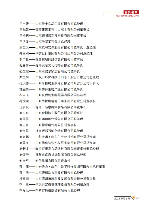协会新一届领导班子确立了“构建服务民企平台,增强服务民企能力,提升民企社会形象,助推民营经济发展”的办会方针,以“树民企形象、助民企发展”为奋斗目标,目前,协会设秘书处和7个专门工作委员会,现有会员2330名。山东健源生物科技有限公司董事长王诚当选第三届理事会常务理事。