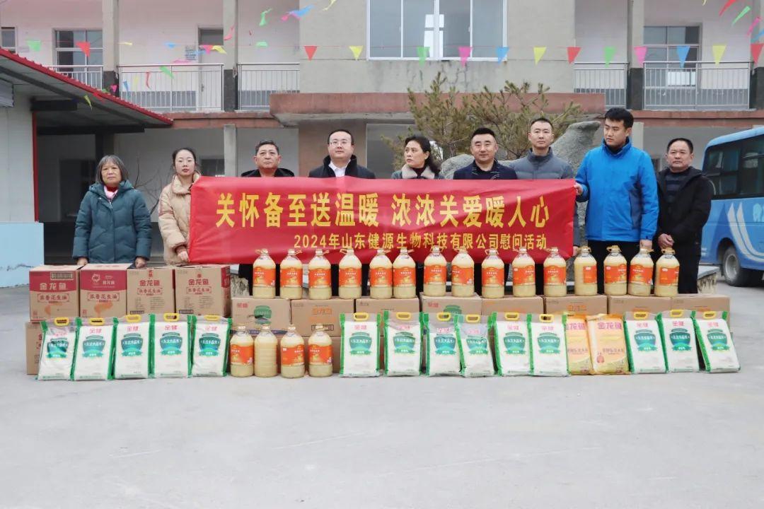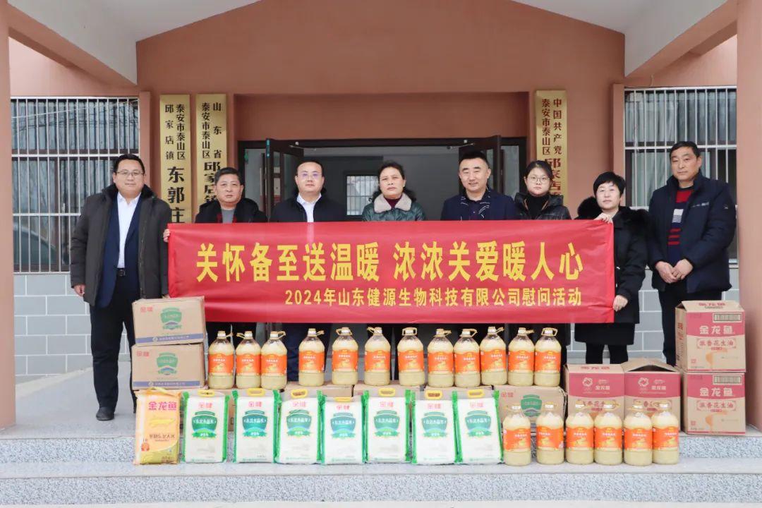 2024年1月31日,健源生物董事长王诚分别来到泰山区邱家店镇东郭庄村和岱岳区徂徕镇桃园村,看望了当地的贫困家庭,并为他们带去了暖心的米、油等慰问品。