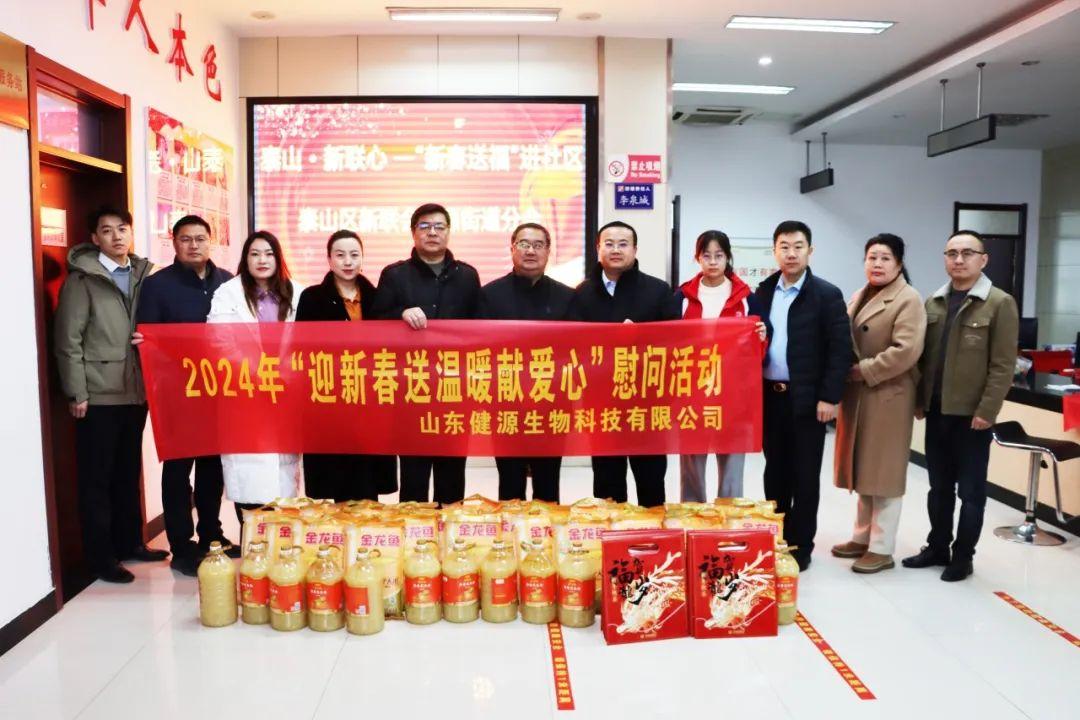 2024年2月4日,健源生物董事长王诚来到泰山区财源街道青山社区,组织大家看望了困难群众,向他们送上温暖的节日慰问和爱心物资。