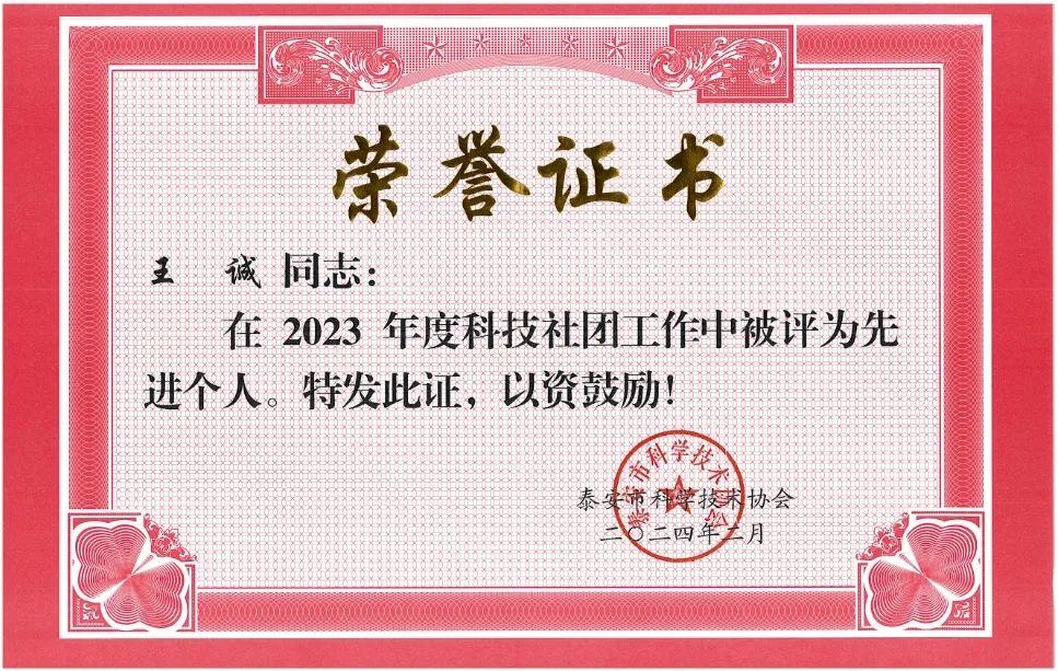 董事长王诚在泰安市科协会议上作典型发言并荣获多项荣誉