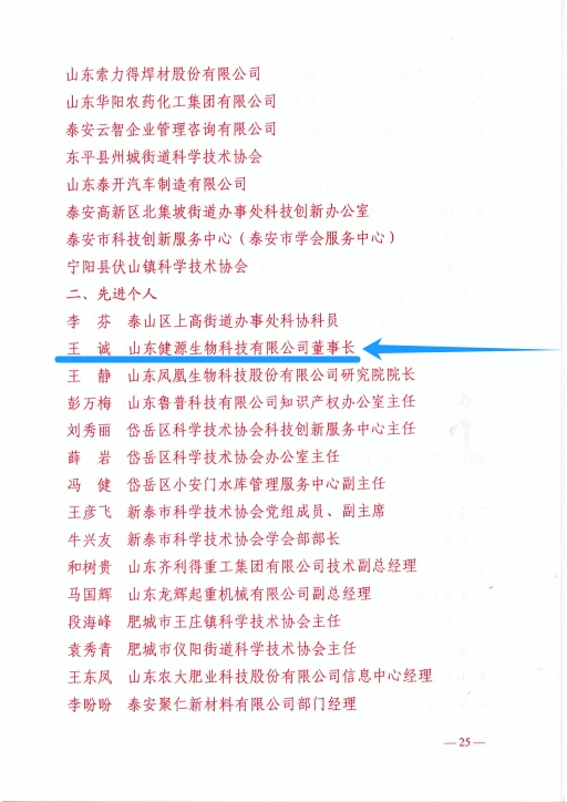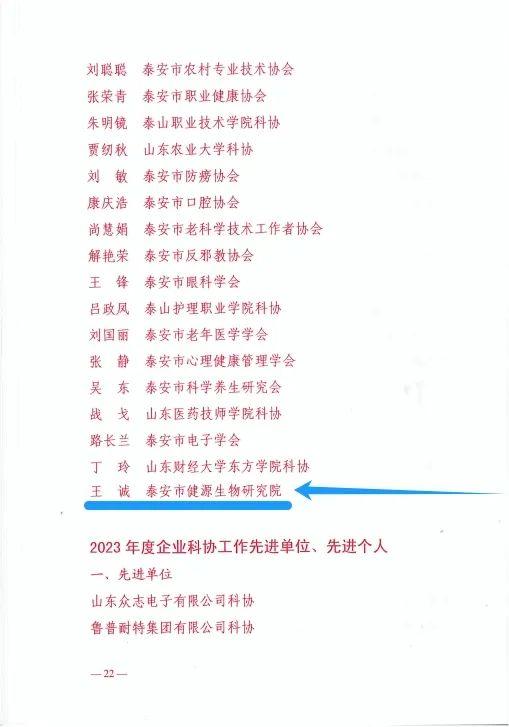 董事长王诚荣获2023年度企业科协工作先进个人,健源生物荣获先进单位