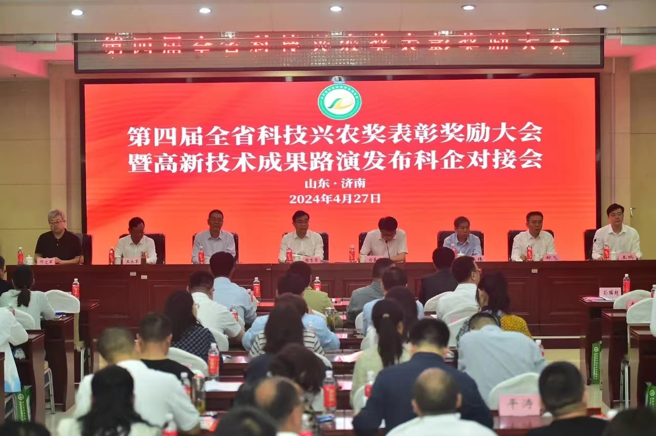 发布时间:[2024-4-28 16:49:12] 浏览量:3337次为贯彻落实习近平总书记在中央农村工作会议讲话精神,促进农业科技成果转移转化,加快产学研融合催发新质生产力,实现全省农业转型升级和高质量发展,2024年4月27日山东省农业科技转化促进会于山东省农科院召开第四届全省科技兴农奖表彰大会暨高新技术成果路演发布科企对接会,山东健源生物科技有限公司作为获奖单位受邀参加本次会议。