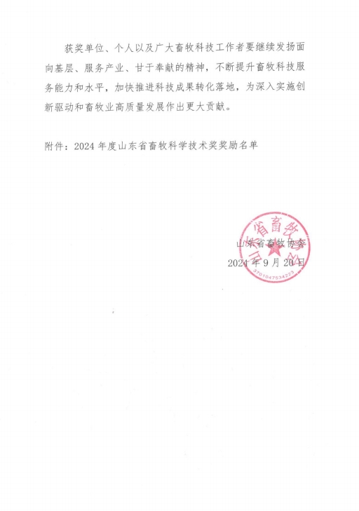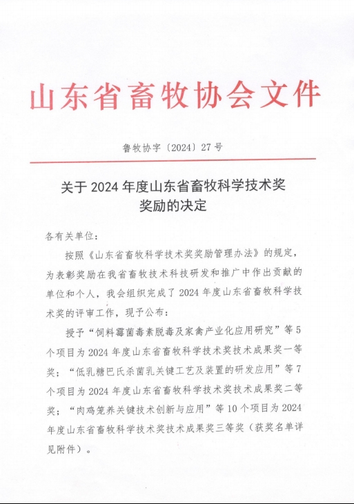 健源生物荣获山东省畜牧科学技术奖科学技术成果奖一等奖