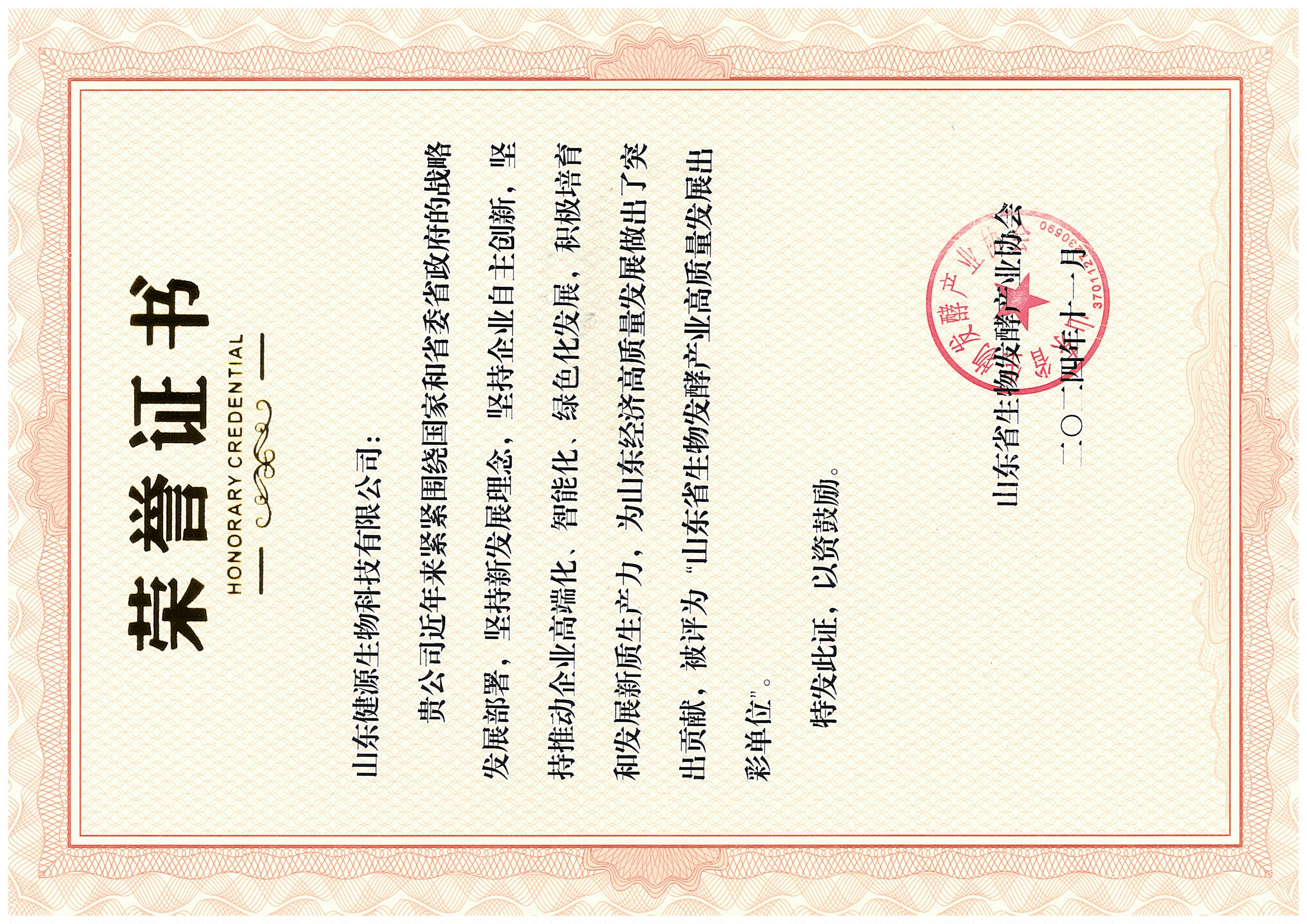 2024-12-19 健源生物荣获“山东省生物发酵产业高质量发展出彩单位”称号