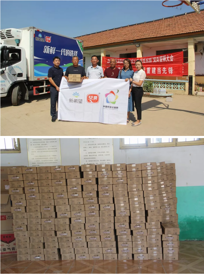 一方有难八方支援,灾难发生后中国奶业公益群向群内发出倡议,呼吁自愿参与为灾区奉献爱心,奶业各企业纷纷行动起来,共收到86家企业和个人的爱心善款。灾区人民恢复家园最需要的是温饱和健康。9月8日,中国奶业公益群代表、山东健源生物邢烛等爱心人士携手新希望乳业的相关人员到寿光市上口镇赵王南楼后村,为灾区人民送去爱心牛奶物资,为受灾群众提供营养补给,帮助受灾群众重建美好家园。