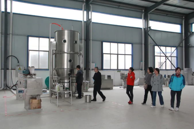 山东农业大学刘建柱教授和药学系老师们参观了公司的科技研发中心、生产车间等,邢主任对厂区内的环境设施和运作流程、工艺流程等进行了讲解。