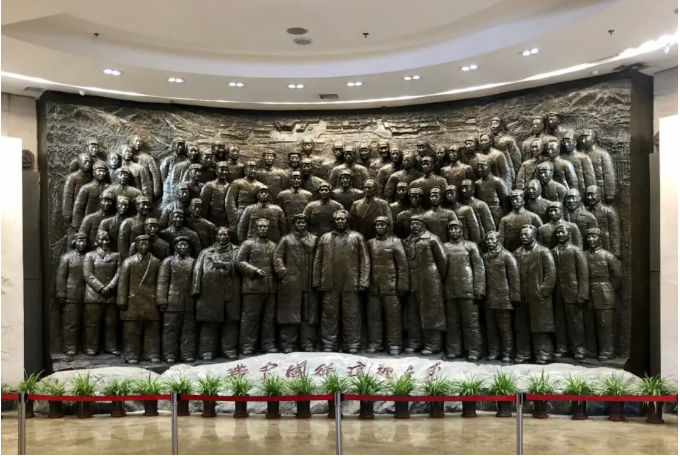 走进西柏坡纪念馆,首先映入眼帘的是“新中国从这里走来”大型铜雕,老一辈革命家群像栩栩如生,坚定的姿态、磅礴的气势,仿佛整个都是用意志和执着铸造的,爆发出蓬勃的力量。