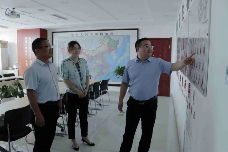 王诚董事长向领导们介绍健源企业文化,积极向上的健源文化获得领导们高度认可。