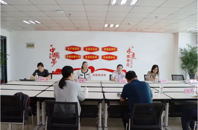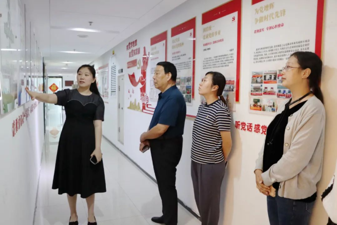 山东健源生物办公室副主任巩倩向领导们介绍党建文化、健源生物企业文化.