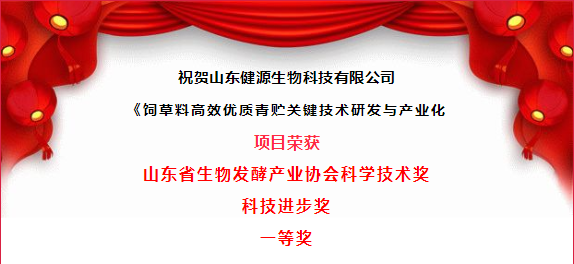 根据《国务院办公厅关于完善科技成果评价机制的指导意见》(国办发(2021)26 号)和《山东省科技厅关于进一步鼓励和规范山东省社会力量奖设立科学技术奖的指导意见》(鲁科字[2018]129号)精神,按照《山东省生物发酵产业协会科学技术奖奖励章程》相关规定,开展了 2022 年度山东省生物发酵产业协会科学技术奖的申报、评审工作,经山东省生物发酵产业协会科学技术奖励委员会评审和审核,山东省生物发酵产业协会批准,授予2项成果为科技进步奖一等奖,4项成果为科技进步奖二等奖,5项成果为科技进步奖三等奖。山东健源生物科技有限公司《饲草料高效优质青贮关键技术研发与产业化》项目荣获山东省生物发酵产业协会科学技术奖科技进步奖一等奖。