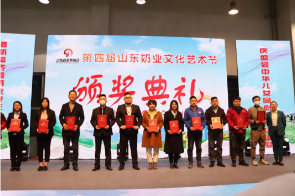 本次博览会期间举行了第四届山东奶业文化艺术节,由山东省畜牧协会、山东省社会组织联合会主办,活动现场对山东奶业先进个人进行了颁奖,山东健源生物科技有限公司董事长王诚荣获“2022年度弘扬齐鲁奶业文化风云人物”称号,山东健源生物技术部总监李燕、外宣部主任邢烛荣获“2022年度最美奶业科技推广先进个人”称号。