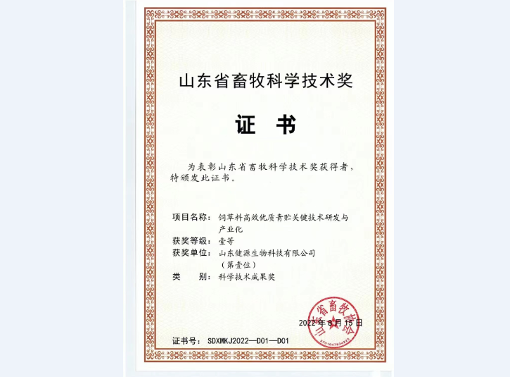 公司产品青贮宝、健力源、益康泰、源立净等连续两年被评为山东畜牧业博览会优质产品金奖并获得了国家...
