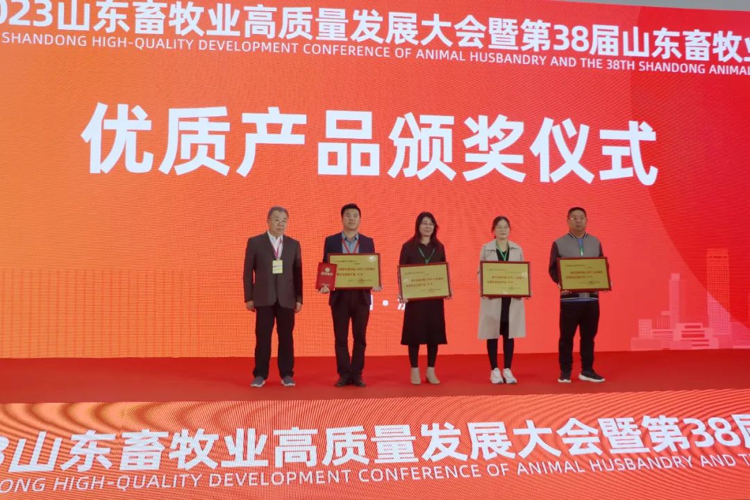 会上对获奖单位进行颁奖,健源生物产品“健力源”、“源立净”、“热舒康”,均被评为第38届(2023)山东畜牧业博览会优质产品金奖。