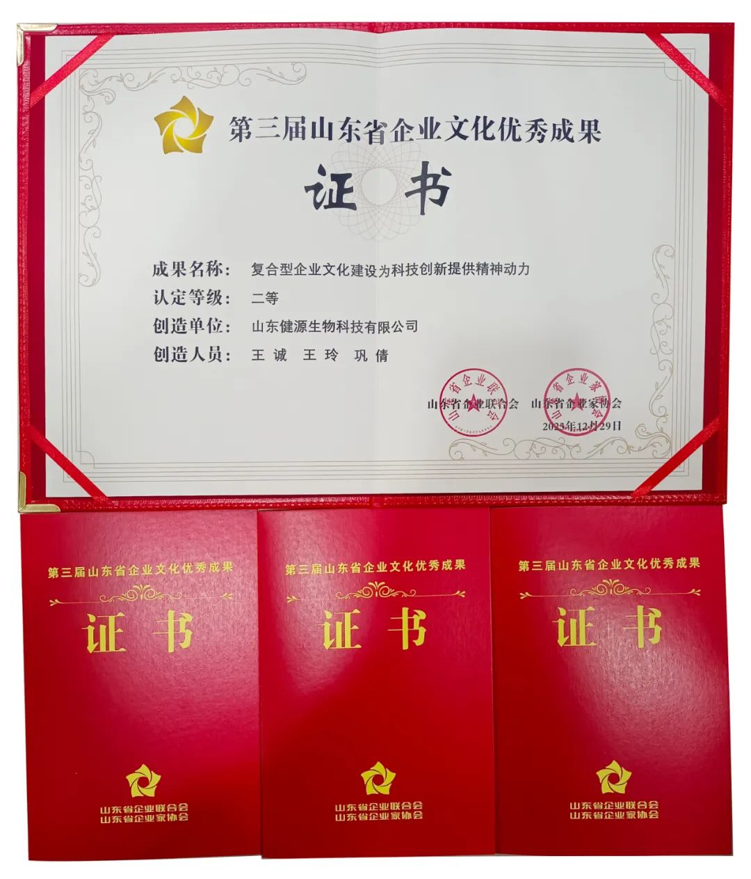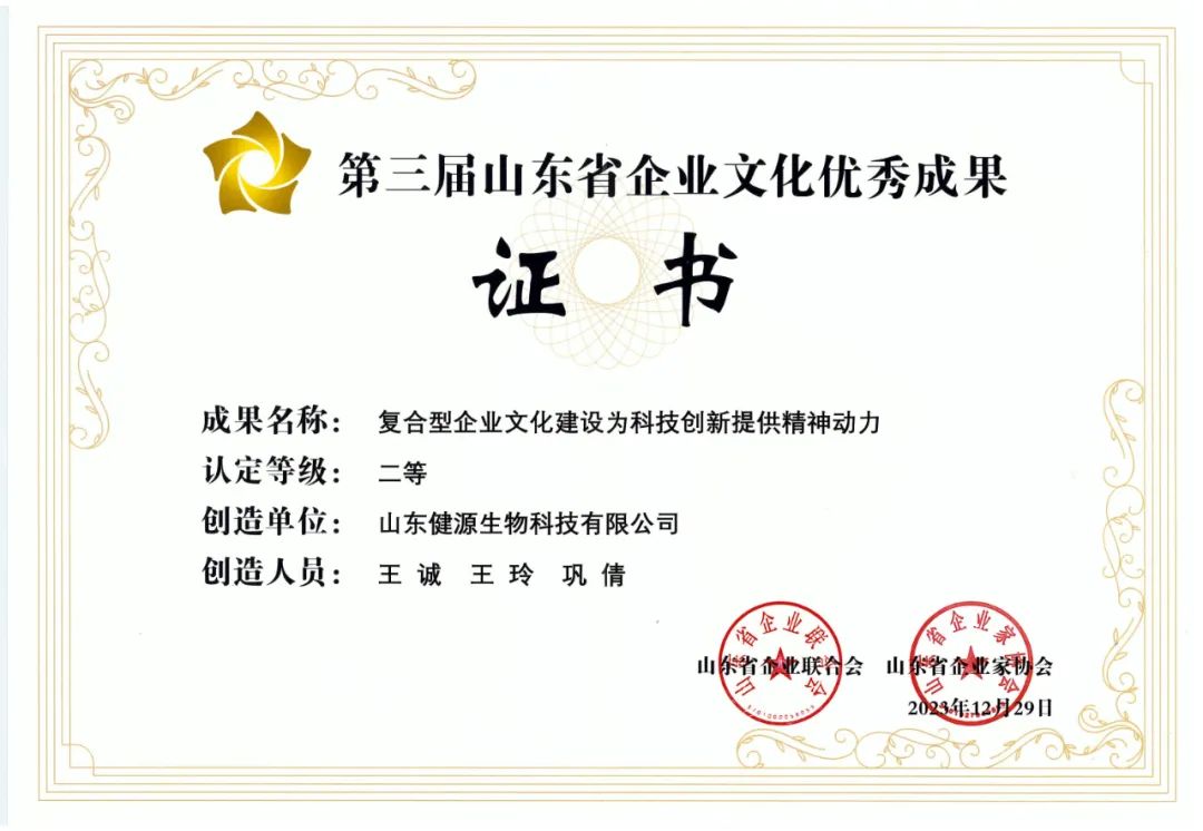 健源生物荣获第三届山东省企业文化优秀成果二等奖
