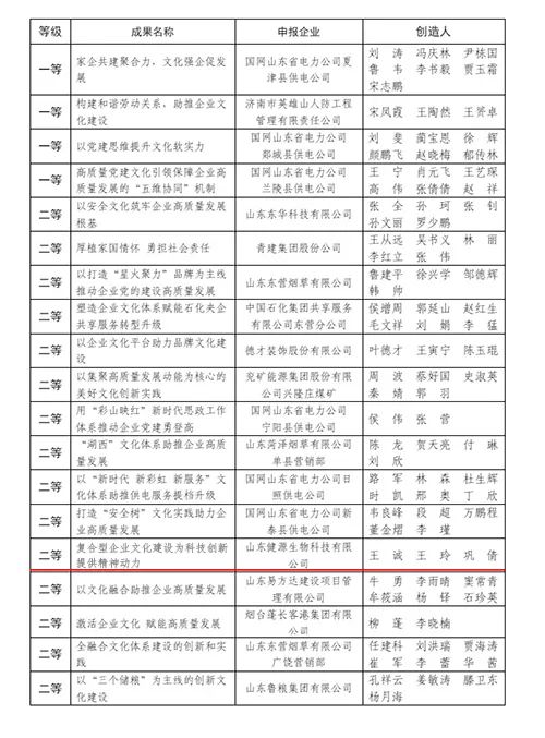 山东健源生物科技有限公司报送的《复合型企业文化建设为科技创新提供精神动力》企业文化建设成果荣获二等奖。