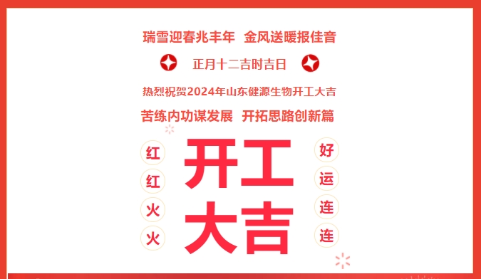 苦练内功谋发展,开拓思路创新篇!崭新的2024已经拉开帷幕,2024年2月21日(农历正月十二),健源生物全体员工欢聚一堂,隆重举行2024年山东健源生物科技有限公司开工典礼。