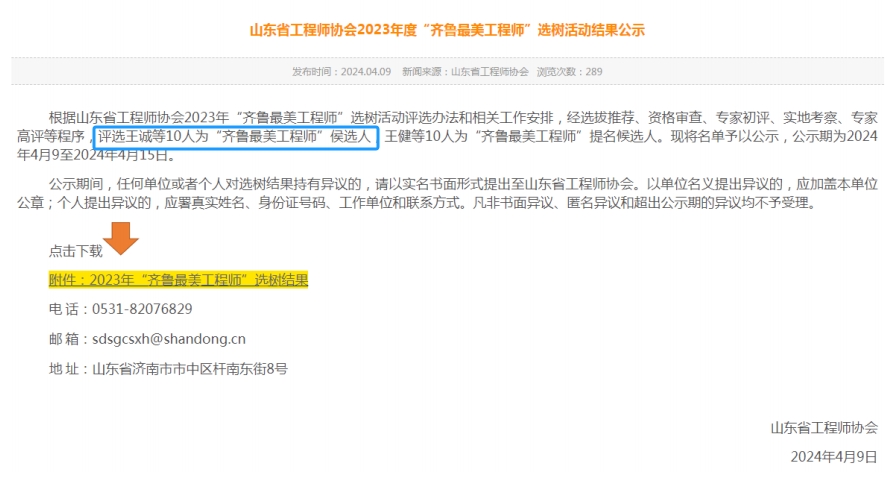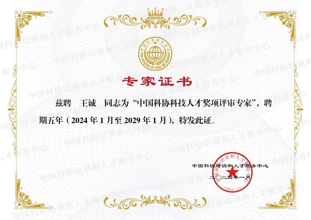 2024年1月被聘请为“中国科协科技人才奖项评审专家”