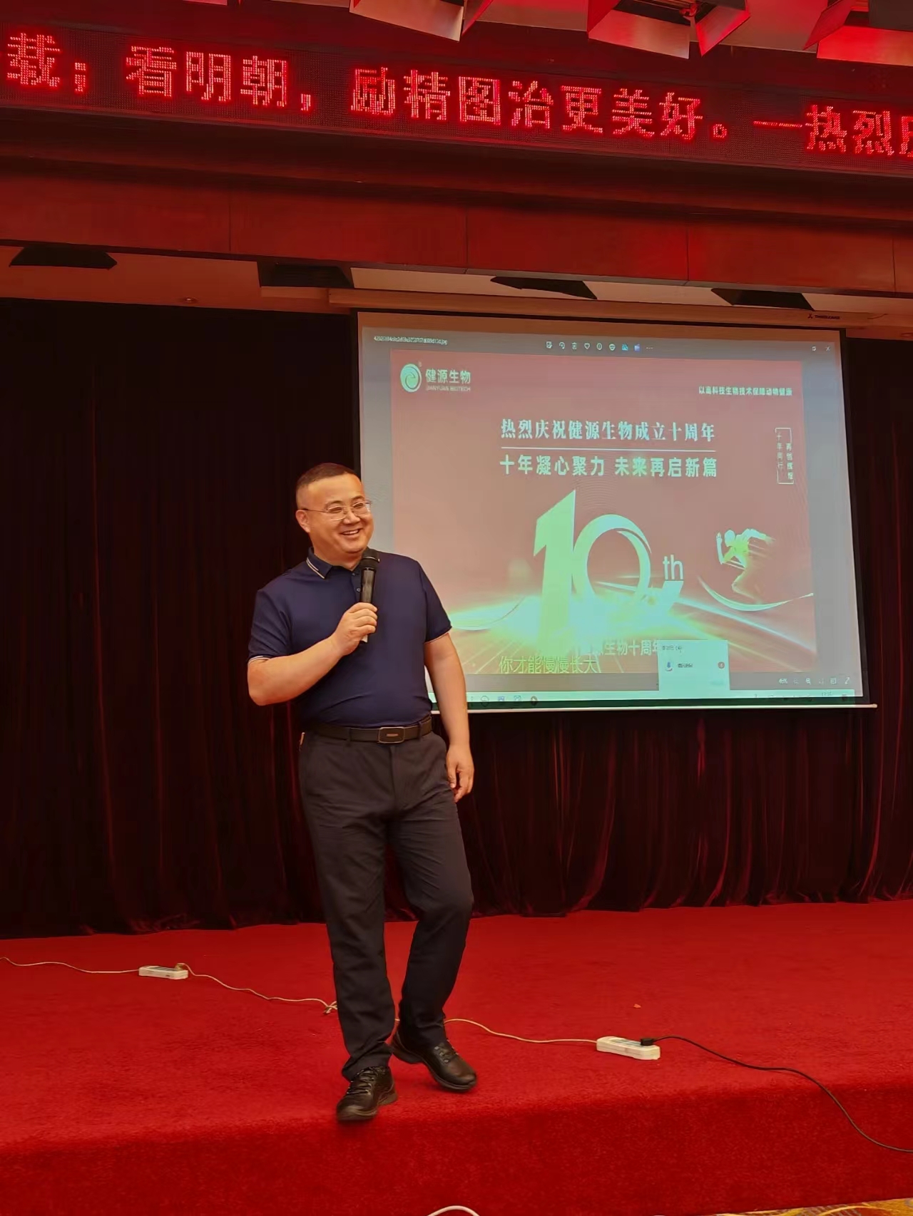 王诚董事长在讲话中指出,健源生物十年来,克服了无资金、无经验、无市场的创业困难,走出了一条他无我有、他有我优、他优我新的创新发展之路,实现了从无到有、从小到大、从弱到强的飞速发展。这一切离不开全体员工的紧密追随,离不开客户朋友的支持信任,离不开各级领导的关怀帮扶。健源生物将始终不忘初心牢记使命,坚守“诚实守信”的企业核心价值观,打造生物科技新质生产力,以高科技生物技术造福人类。