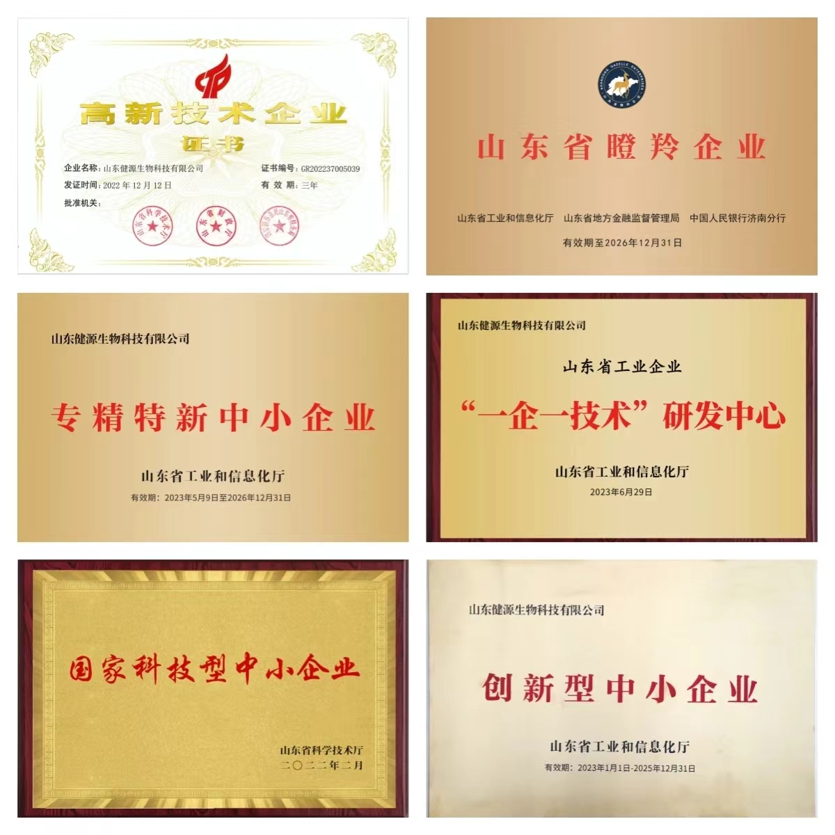 健源生物成立十周年,部分企业荣誉展示