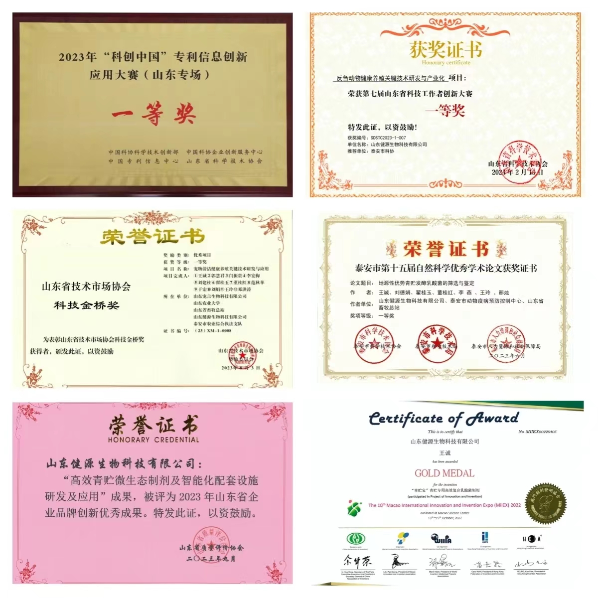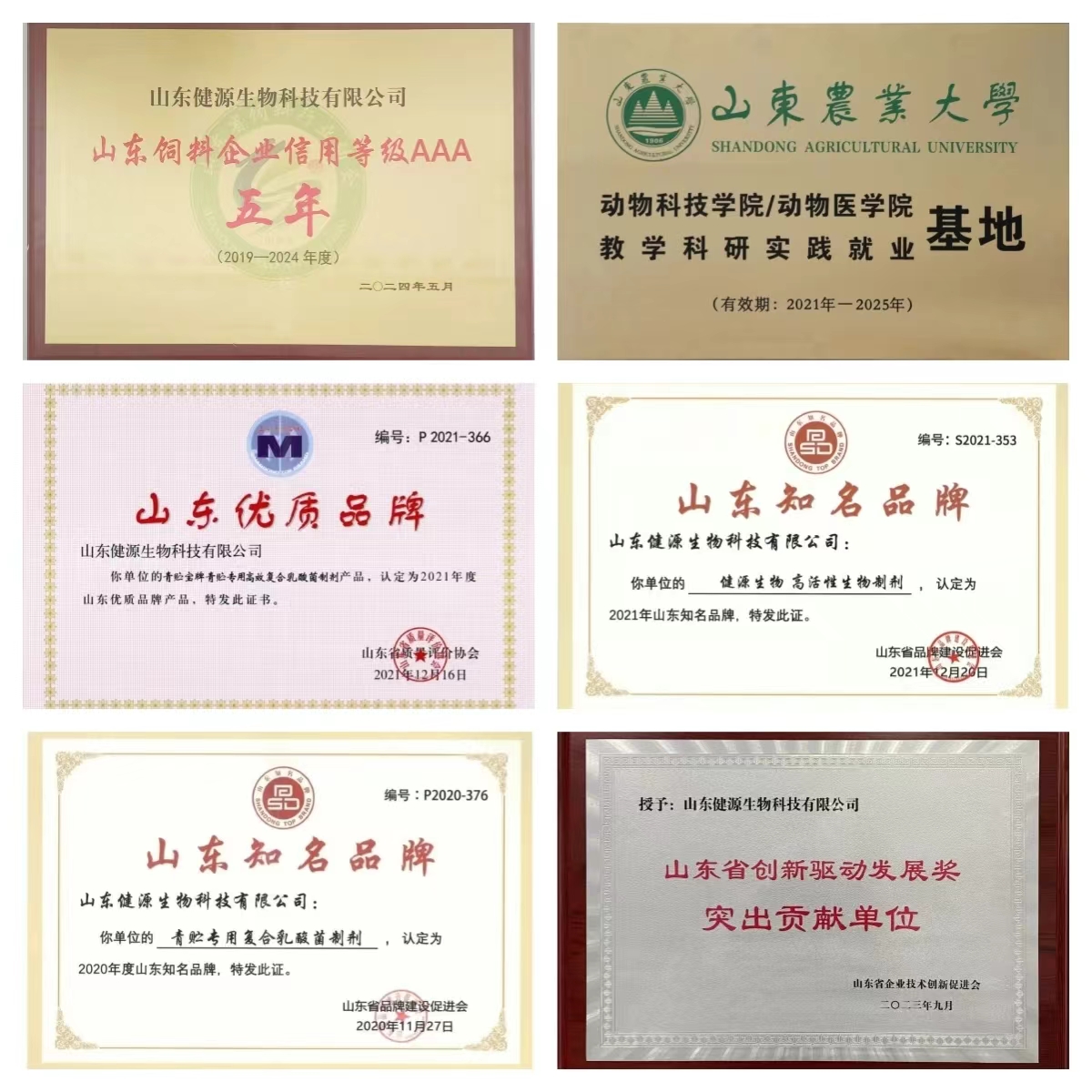 山东健源生物科技有限公司系国家高新技术企业、国家科技型中小企业、山东省瞪羚企业、山东省专精特新中小企业、山东省一企一技术研发中心、泰安市农业产业化重点龙头企业。公司深耕动物微生态行业十年,主攻动物类生物大健康产品,研发出三十多种高活性生物制剂产品,致力于以高科技生物技术保障动物健康,现已获得国家知识产权局颁发的各类专利证书100余项,其中包括32项国家发明专利、3项国际发明专利,60余项实用新型专利、14项软件著作权,注册商标100多个,还有正在申请中的国家发明专利20余项,累计荣获市级科技奖项7项,省级科技奖项30余项,部级科技奖项12项。