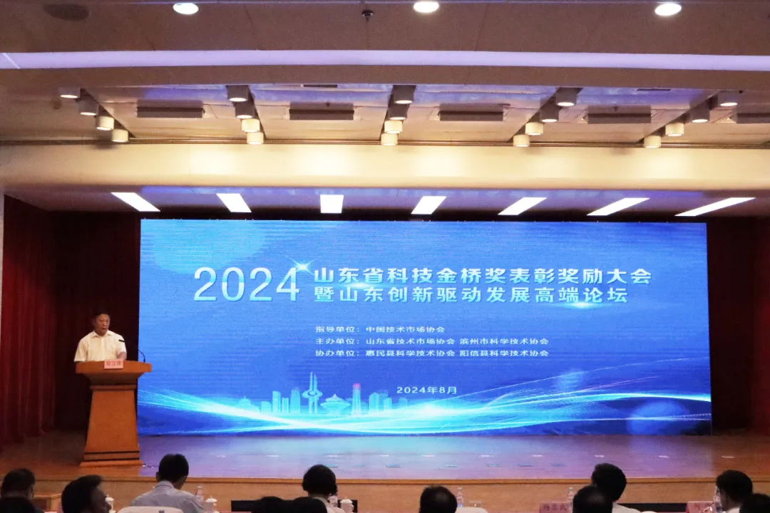 大会宣读了《关于2024年度山东省技术市场协会科技金桥奖奖励的决定》,与会领导为2024年度山东省科技金桥奖先进集体、先进个人、优秀项目和优秀组织进行了表彰和颁奖。
