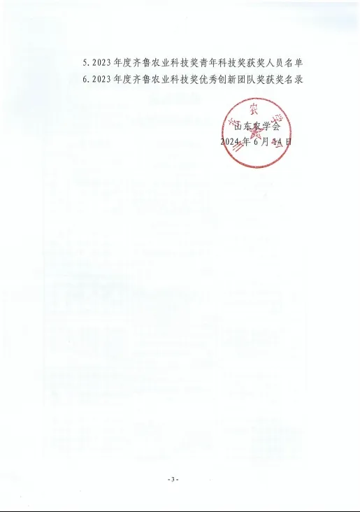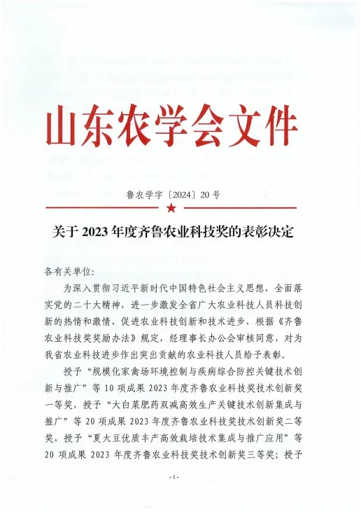 齐鲁农业科技奖是山东农学会设立的面向全省农业行业的综合性科学技术奖,主要奖励为全省农业科学技术进步和创新作出突出贡献的集体和个人,对于调动广大农业科技工作者的积极性和创造性,促进我省农业科技创新,不断提升产业发展水平起到了积极的推动作用。