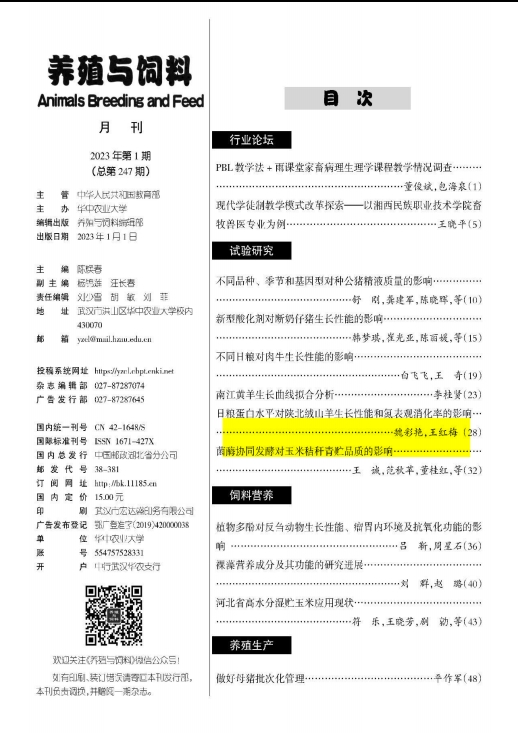 健源生物发表在《养殖与饲料》的论文入选2023年度湖北省科技期刊百篇优秀论文