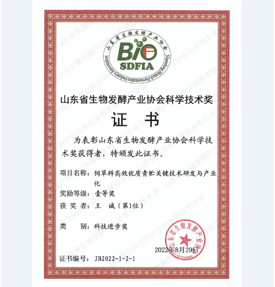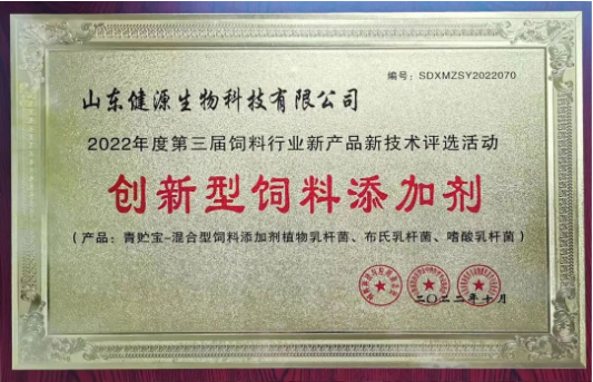 2022-11-1 祝贺山东健源生物(青贮宝)产品荣获“2022年度创新型饲料添加剂”荣誉称号