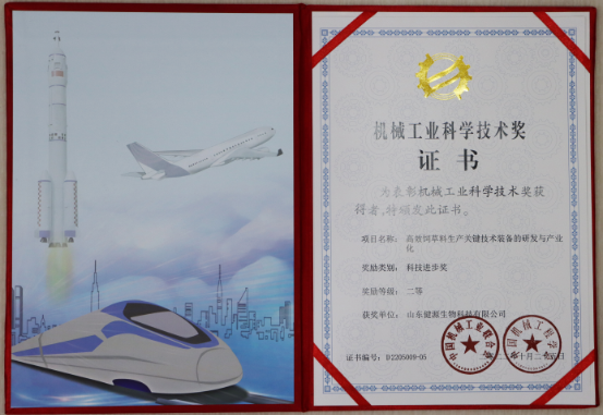 祝贺山东健源生物参与完成的《高效饲草料生产关键技术装备的研发与产业化》项目荣获2022年度机械工业...