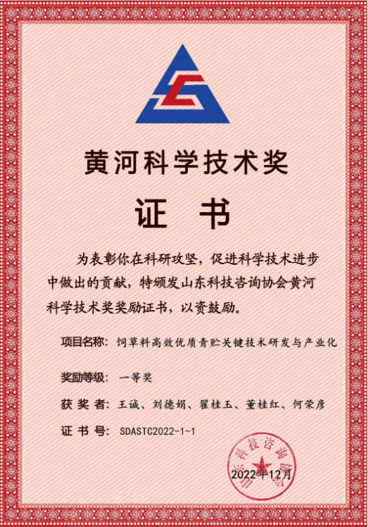 2023-1-12 祝贺山东健源生物荣获2022年度黄河科学技术奖一等奖