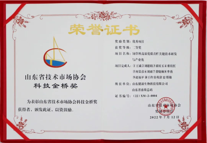 2022-8-11 【喜报】山东健源生物荣获山东省科技金桥奖二等奖