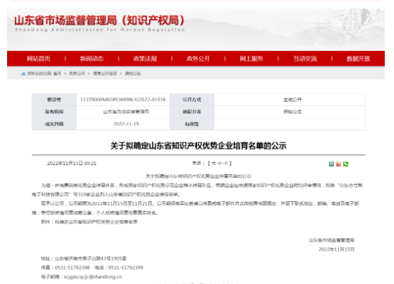 祝贺山东健源生物列入山东省知识产权优势企业培育名单